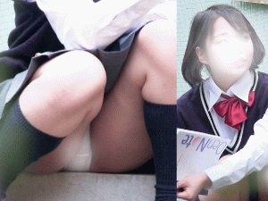 お座り女子校生 さりげなくパンティが見えてしまう